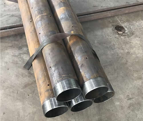 把管棚管打入注浆小导管的孔洞。管棚管直径宜为φ70~180mm,连接头长短宜为4~6m,选用厚壁钢管箍,并且用满丝口固定不动,丝口长短不得小于15cm,连接头在隧道的截面应该分开。