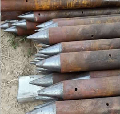 注浆管一般使用Φ42或Φ50钻杆,底部带有特制的喷咀,喷咀直径为一般为2.0mm—3.0mm,实际多采用2.3mm—2.5mm。